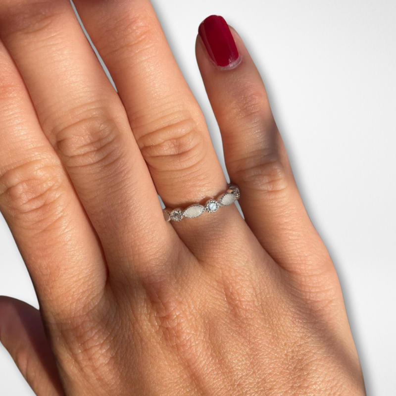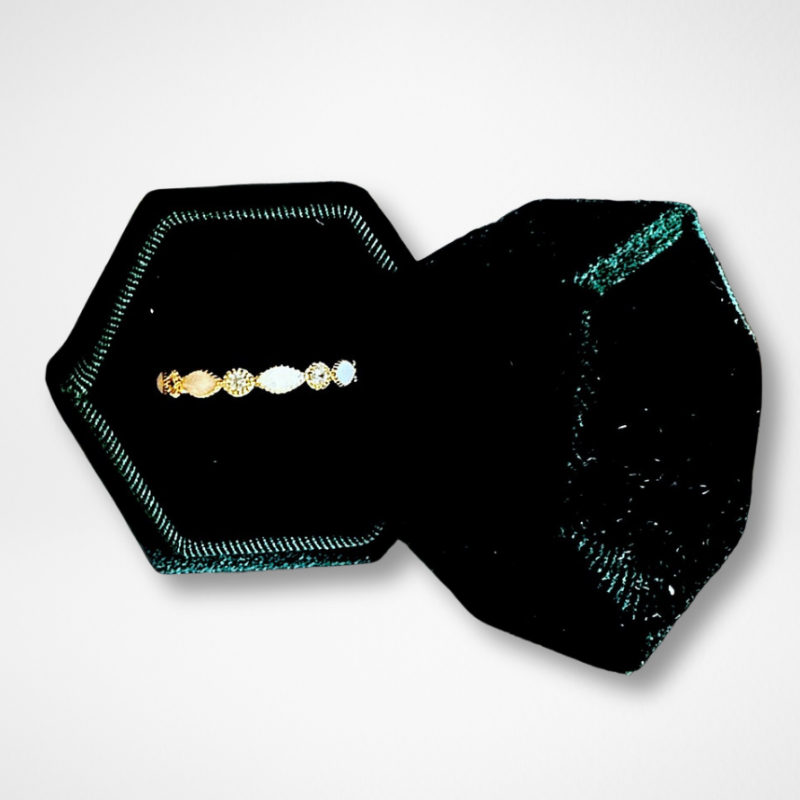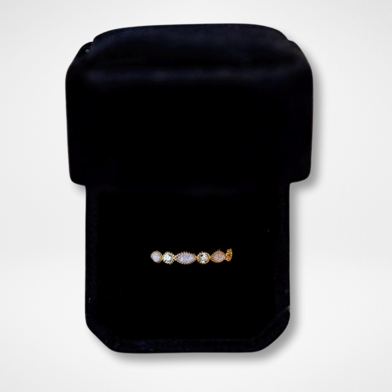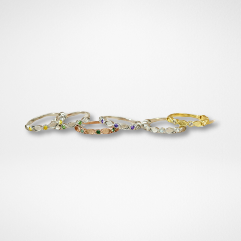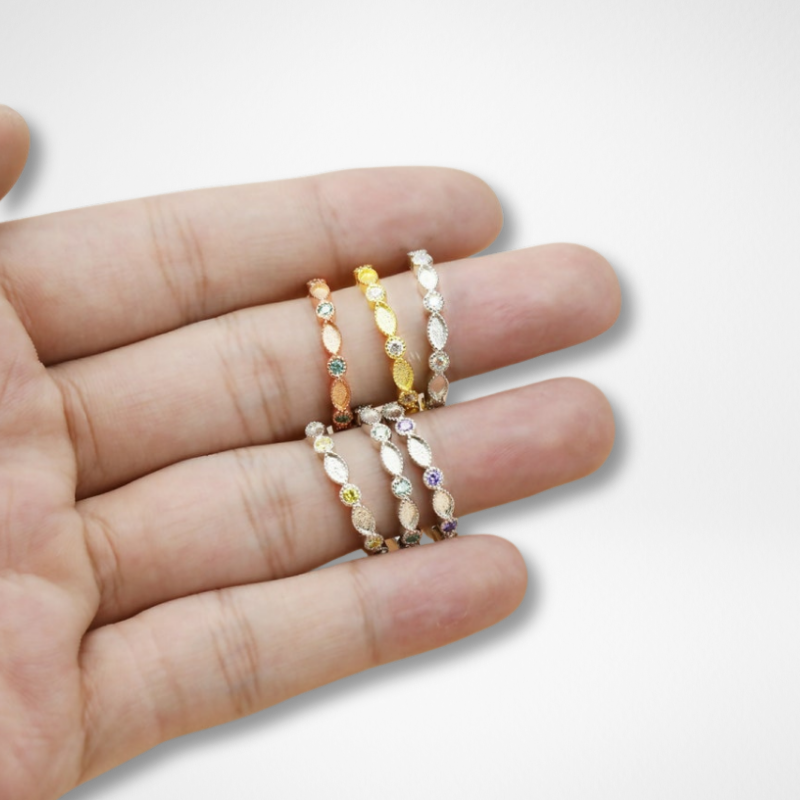 O Anel Intuição possui um design delicado e moderno, com a possibilidade de ser combinado com outros anéis. Ele é composto por pequenas marquises, intercaladas com zircônias, que decoram metade do aro do anel. As zircônias do anel podem ser coloridas e representar as pedras do nascimento, trazendo ainda mais possibilidades de personalização.