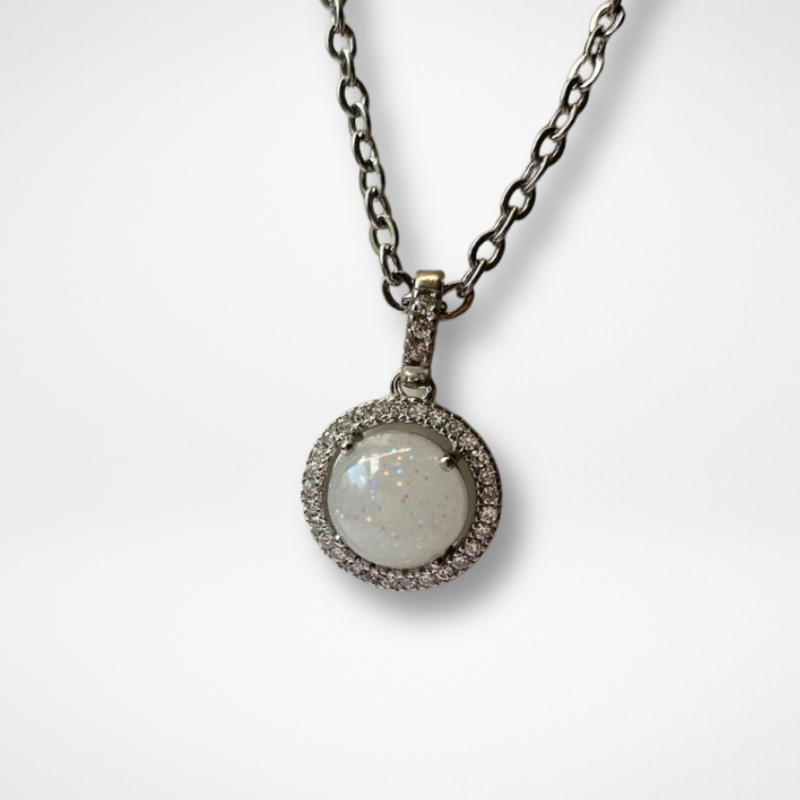 O Pendente Inocência possui um design clássico e elegante, com um toque moderno. Ele é composto por uma pedra central redonda rodeada por zircônias em cravação pavê que aumentam seu brilho e luminosidade.